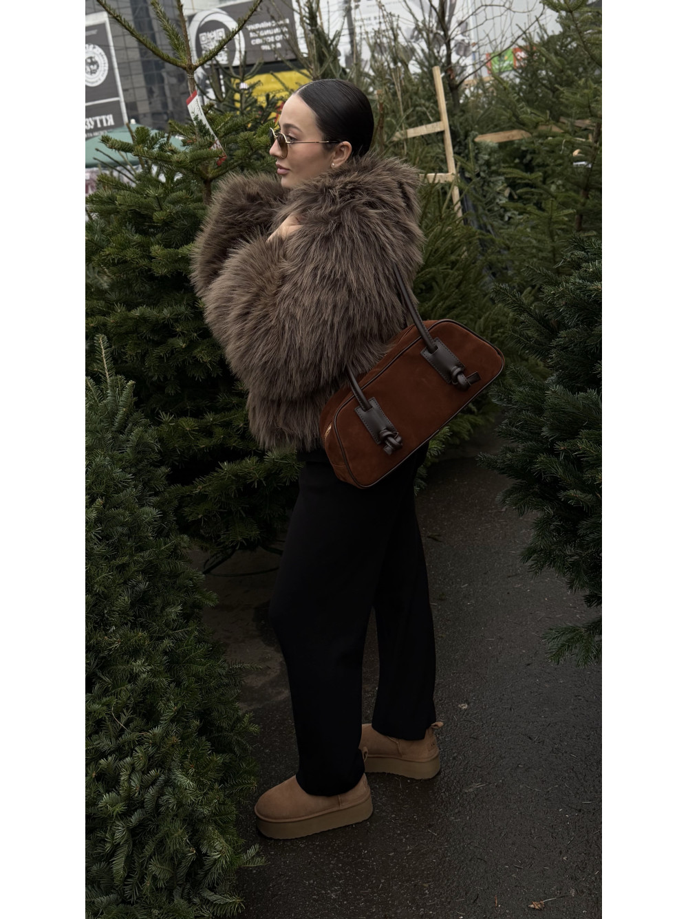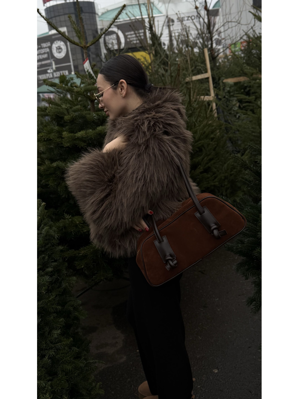 Опис Жіноча сумка багет 25-91 шоколадна замшева