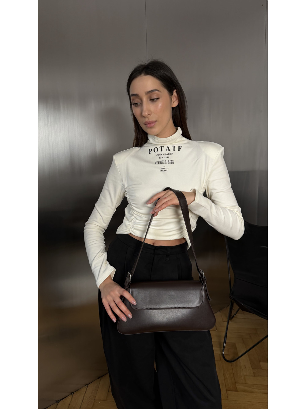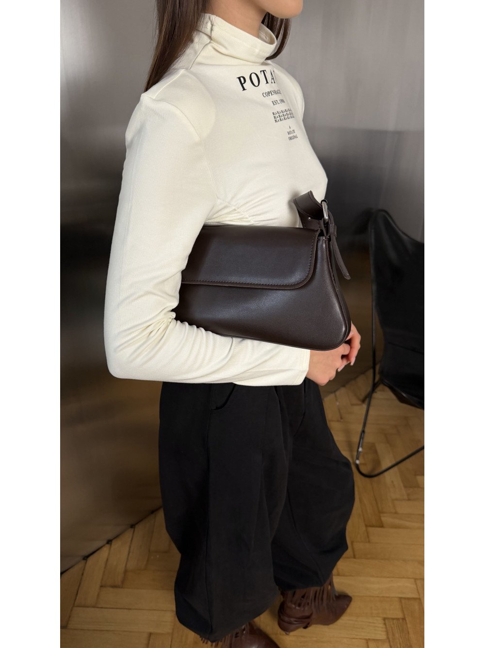 Опис Жіноча сумка багет шоколад 22-24а