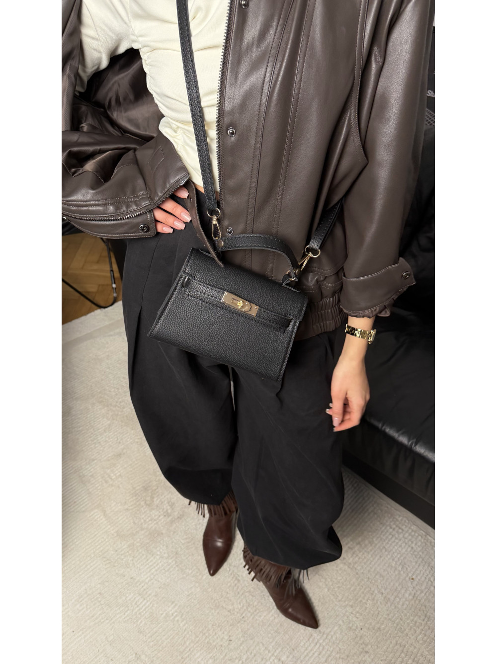 Питання та відповіді (FAQ) Жіноча міні сумка чорна зерниста 26-05