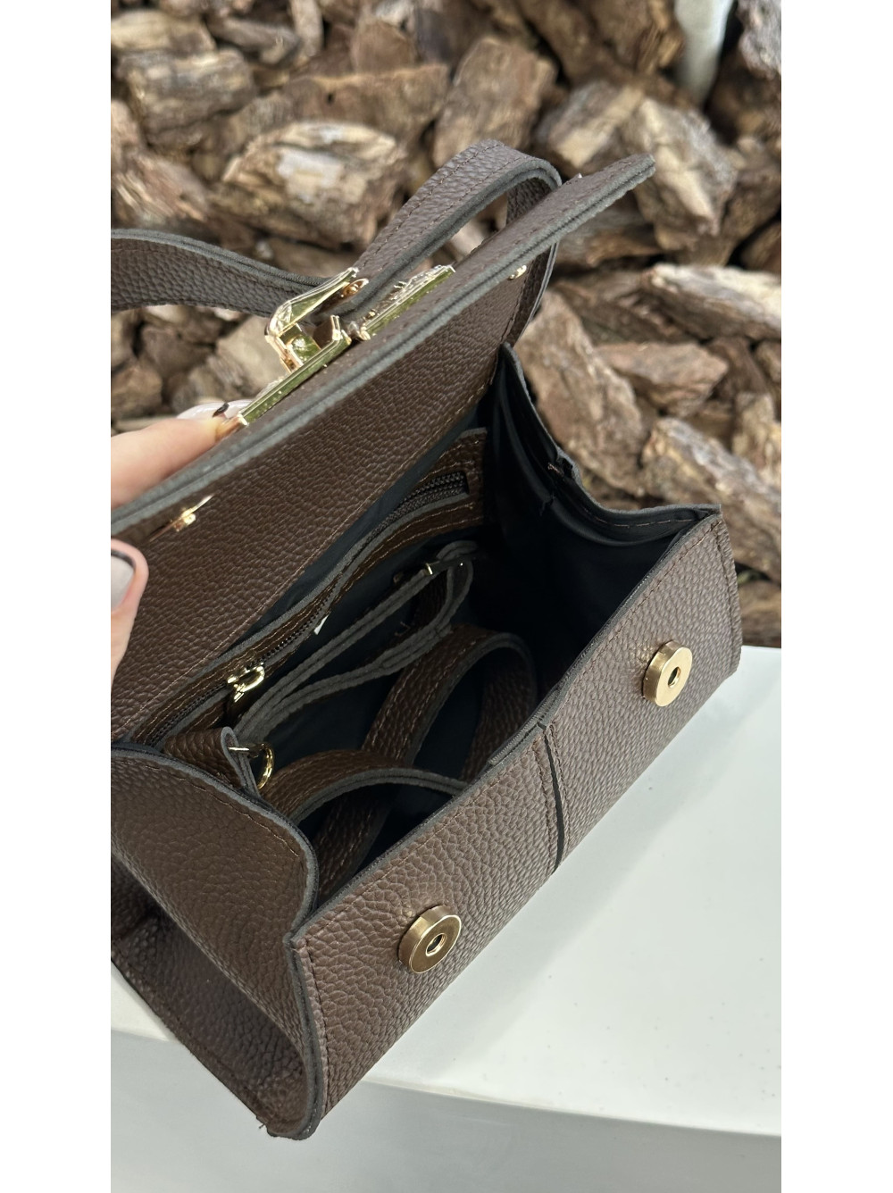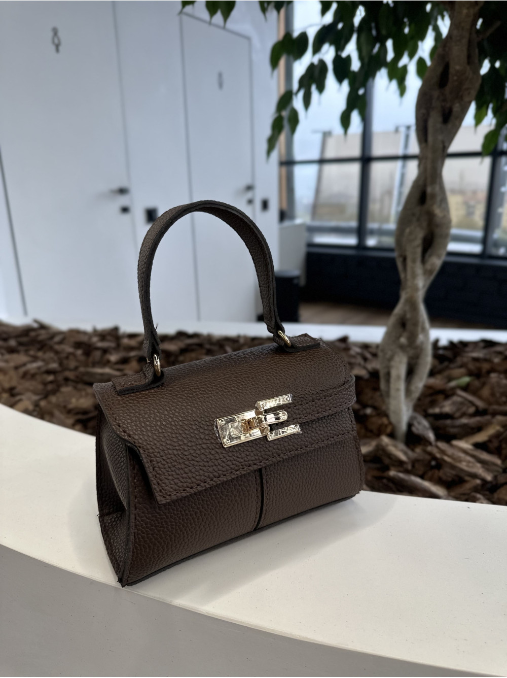 Опис Жіноча міні сумка шоколадна зерниста 065